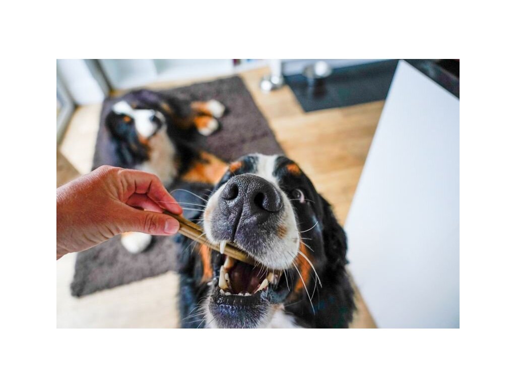 Množství podávaného pamlsku vždy přizpůsobte hmotnosti, aktivitě a celkové kondici psa. Při podání pamlsku nenechávejte psa bez dozoru. Zajistěte dostatek pitné vody.