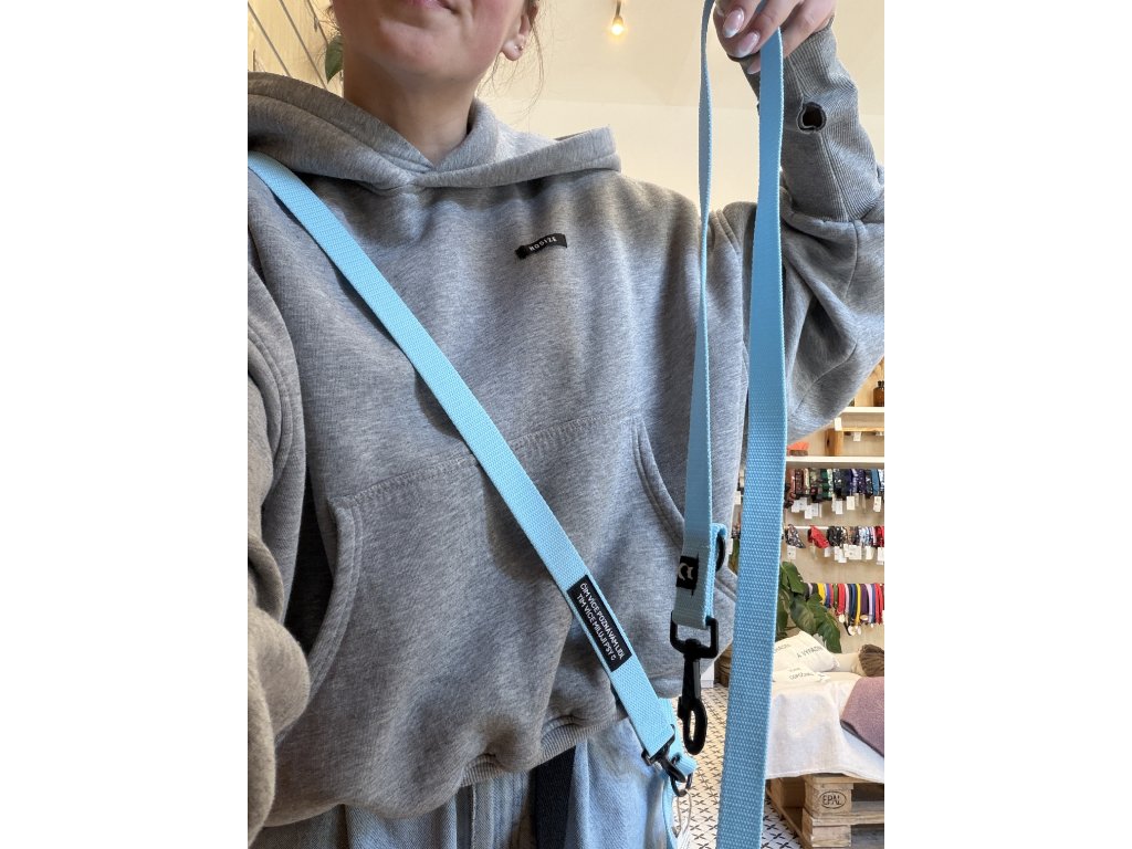 Vodítko můžeš nosit klasicky v ruce, kolem pasu nebo přes rameno, což oceníš hlavně při delších procházkách, výletech nebo když potřebuješ mít volné ruce.