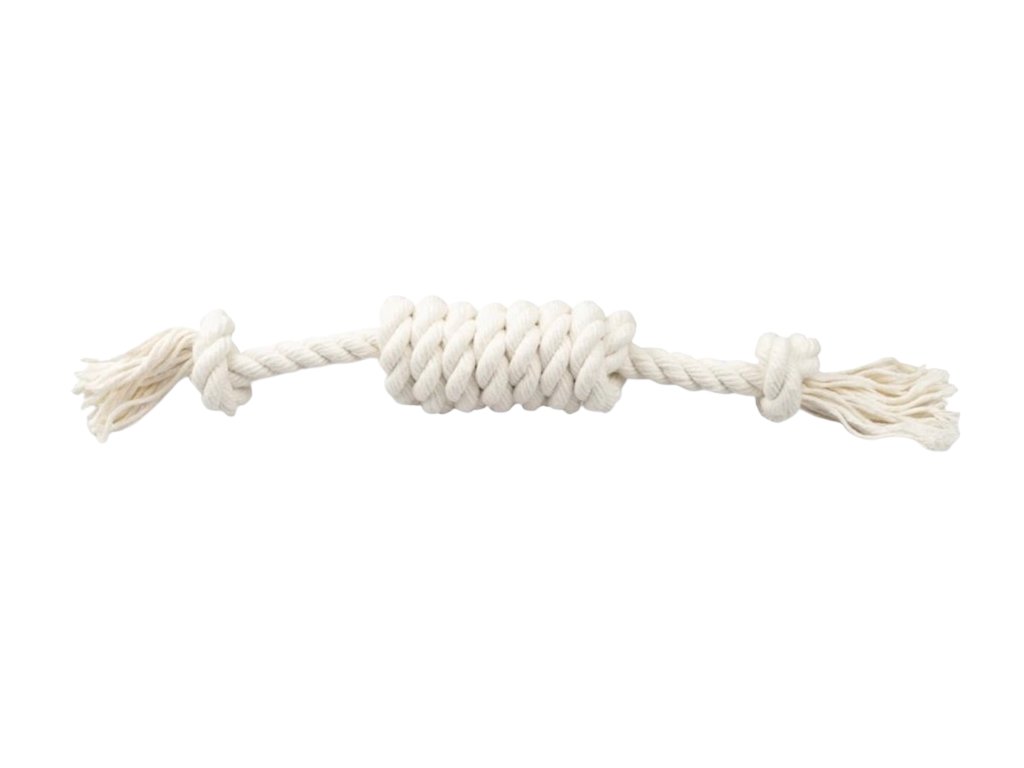 S touhle hračkou si užiješ spoustu aportování a přetahování. Je ručně vyrobená z pevného lana ze 100% organické bavlny.